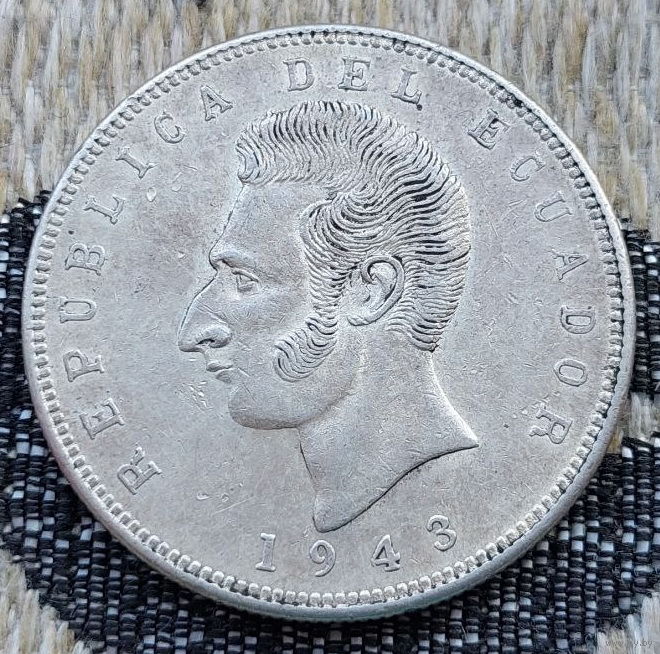 Эквадор 5 эскудо 1943 года. Герб. II Мировая война. Серебро! Сторгуй за свою цену, предложи обмен! Y