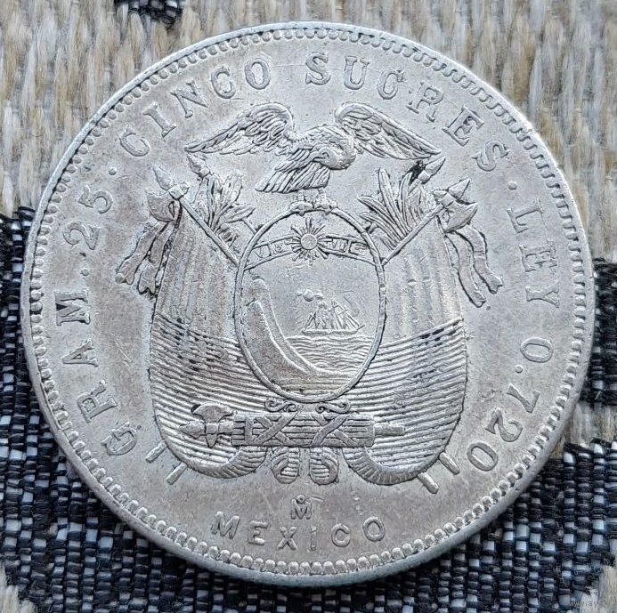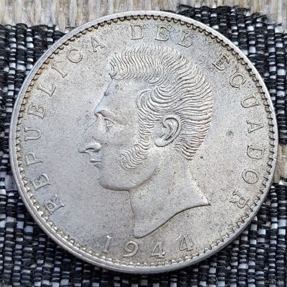 Эквадор 5 пять сукре 1944 года. Герб. II Мировая война. Серебро! Сторгуй за свою цену, предложи обмен! Y