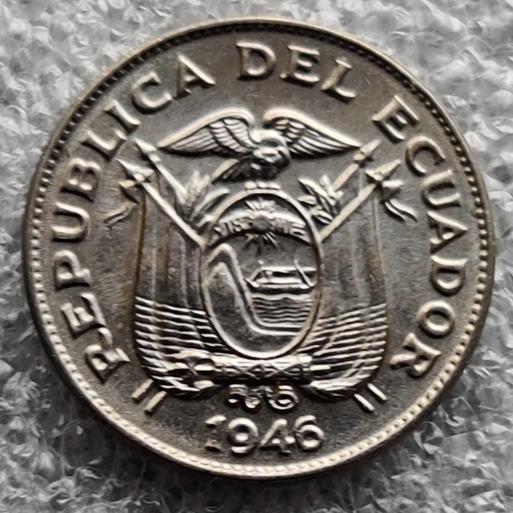Номер KM # 75b Страна Эквадор Период Республика Эквадор (1919 - 1987) Валюта Эквадорский сукре Вид чекана Регулярный чекан Номинал 5 сентаво Год 1946 Гурт Гладкий Форма Круг Отношение авс/рев Монетное (180°) Материал Медно-никелевый сплав Вес (g) 2 Диаметр (mm) 17 Толщина (mm) 1,4