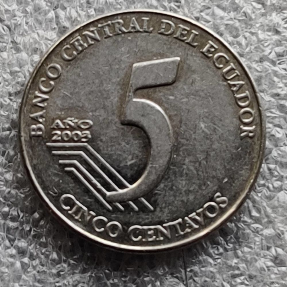 Номер KM # 105 Страна Эквадор Период Республика Эквадор (2000 - 2025) Валюта Эквадорский сукре Вид чекана Регулярный чекан Номинал 5 сентаво Год 2000 - 2003 Гурт Гладкий Форма Круг Отношение авс/рев Монетное (180°) Материал Нержавеющая сталь Вес (g) 5 Диаметр (mm) 21,21 Толщина (mm) 1,95