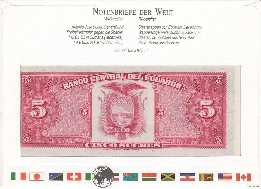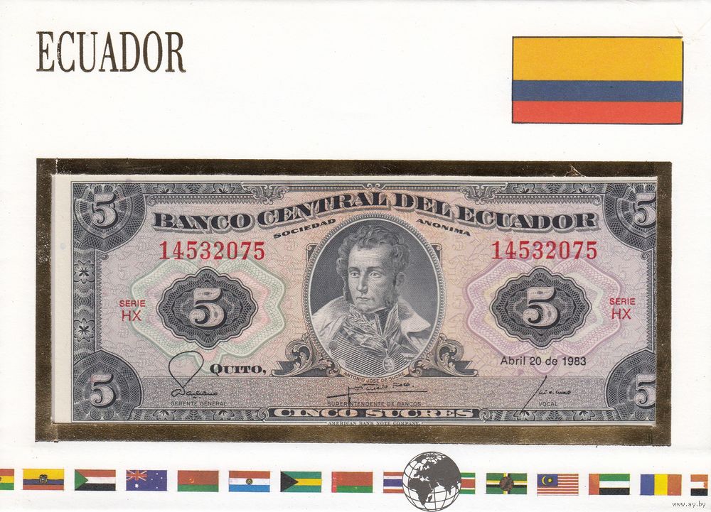 Эквадор 5 сукре 1983 (UNC, банкнота в конверте)