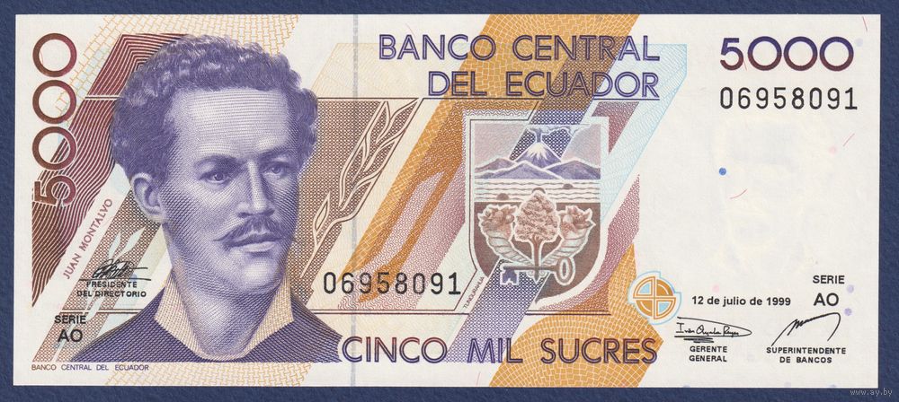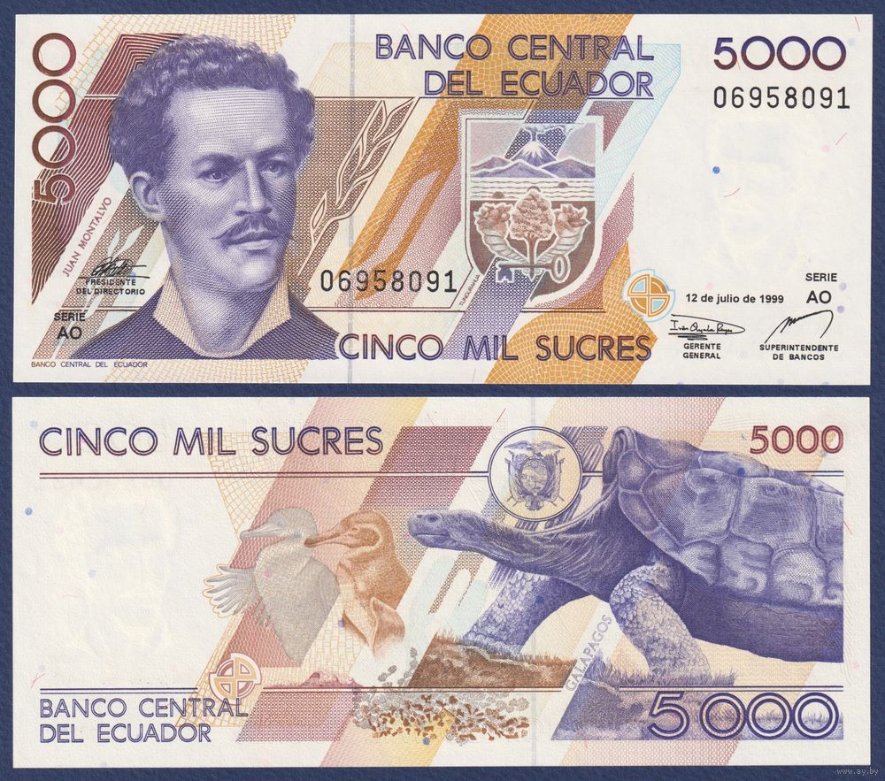 Эквадор, 5000 сукре 1999 г, P-128c (AO, писатель Хуан Монтальво), UNC