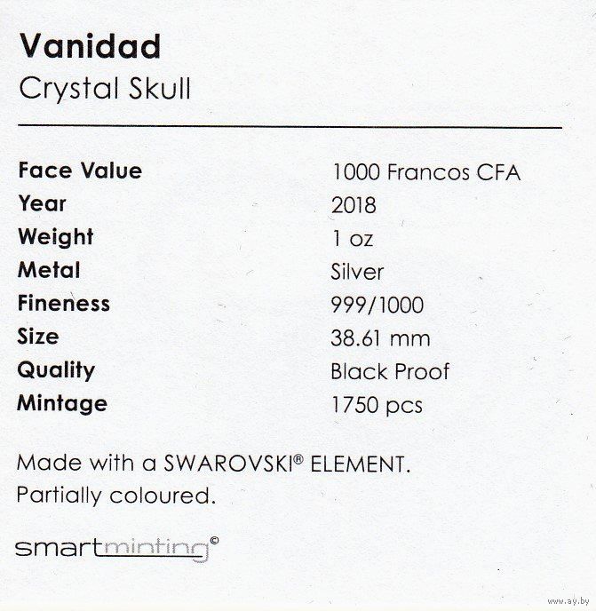 Благодаря уникальной технологии чеканки Smartminting достигнуты невероятные объёмные и чёткие детали реверса. Черный кристалл Swarovski в сочетании с качеством "Black Proof", делают эту монету поистине завораживающей.