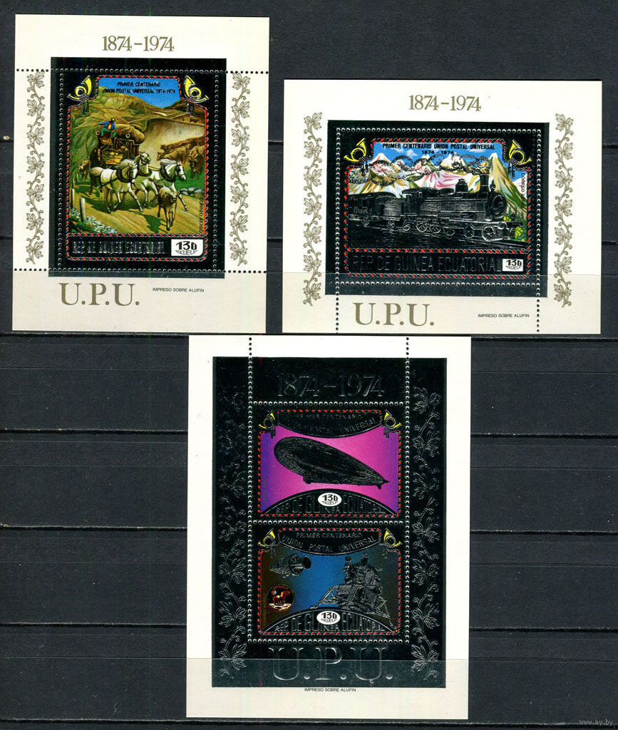 Экваториальная Гвинея - 1974 - 100-летие Всемирного почтового союза - SILVER - [Mi. bl. 111-113] - 3 блока. MNH. (Лот 58JD)-TG2P8