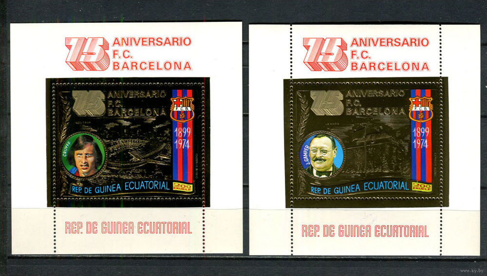 Экваториальная Гвинея - 1974 - 75 лет Футбольному клубу Барселона - Gold - [Mi. bl. 136-137] - 2 блока. MNH. (Лот 57JE)-TG2P15