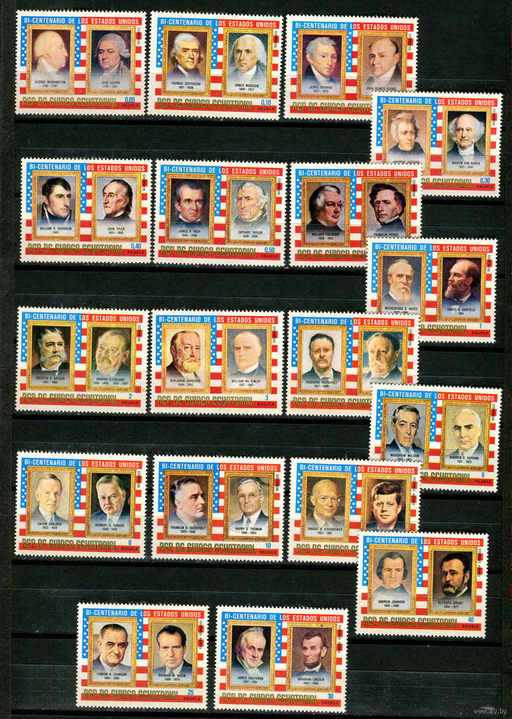 Экваториальная Гвинея - 1975 - 200 лет Независимости США. Президенты - [Mi. 599-616] - полная серия - 18 марок. MNH. (Лот 60JE)-TG2P10
