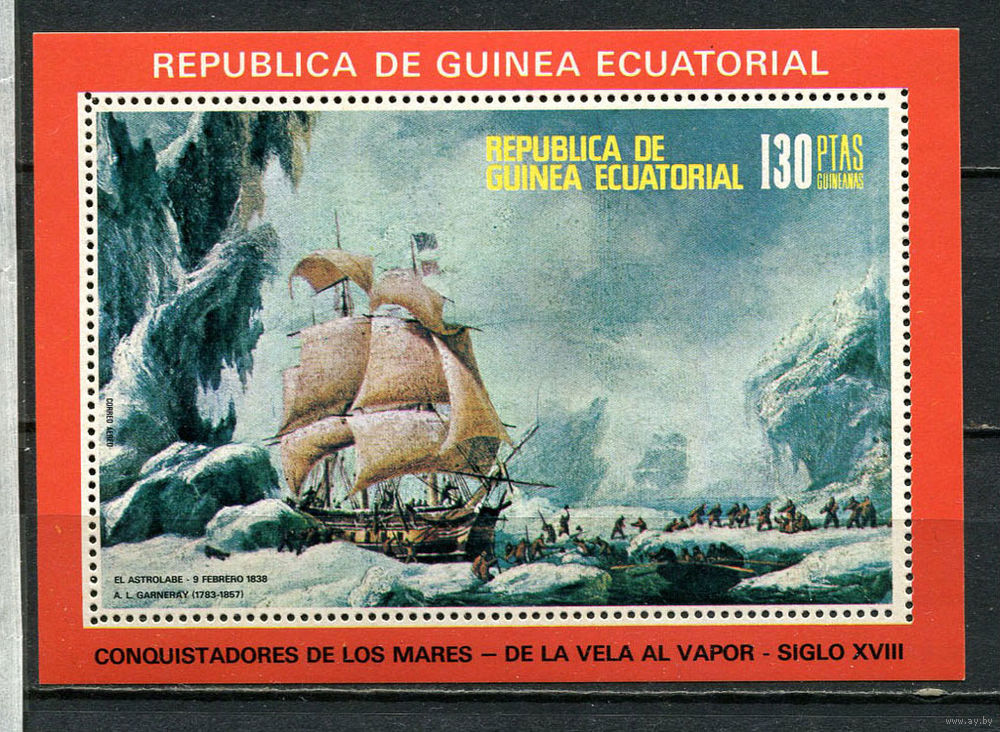 Экваториальная Гвинея - 1976 - Парусник - (незнач. пятно на клее) - [Mi. bl. 248] - 1 блок. MNH. (Лот 59JR)-T3P50