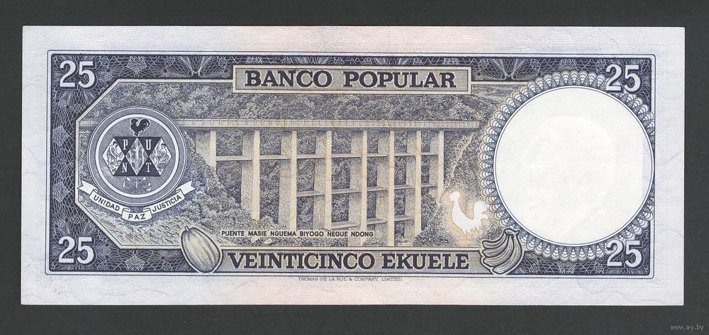 Экваториальная Гвинея 25 экуэле 1975 года. Masie. Тип P-9. Состояние UNC