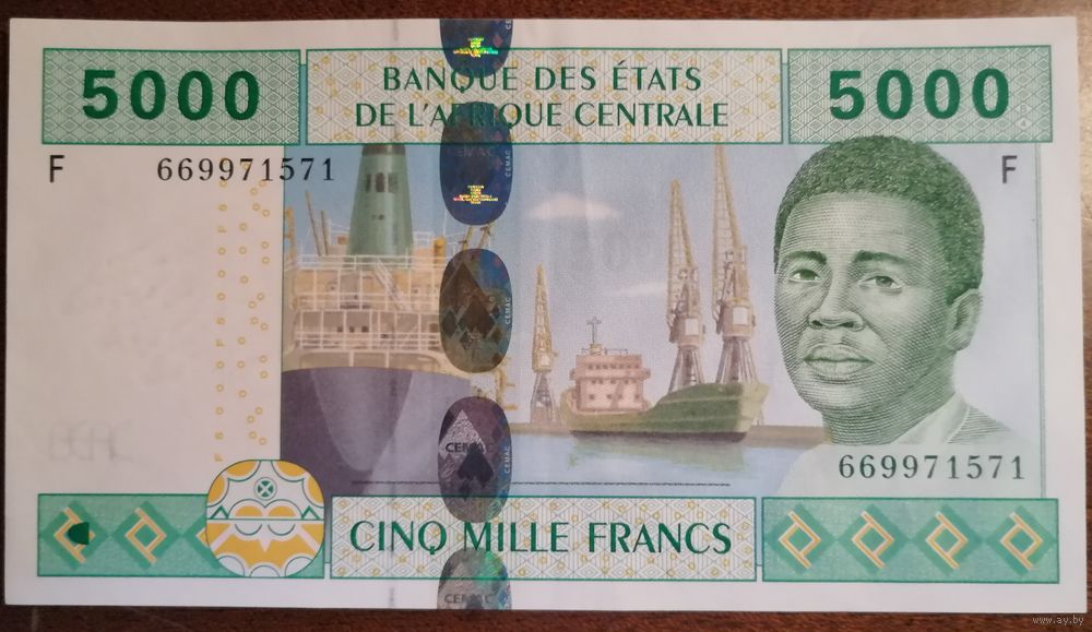 Экваториальная Гвинея, Банк центральной Африки, 5000 франков 2002 г., отметка "F", P:509F