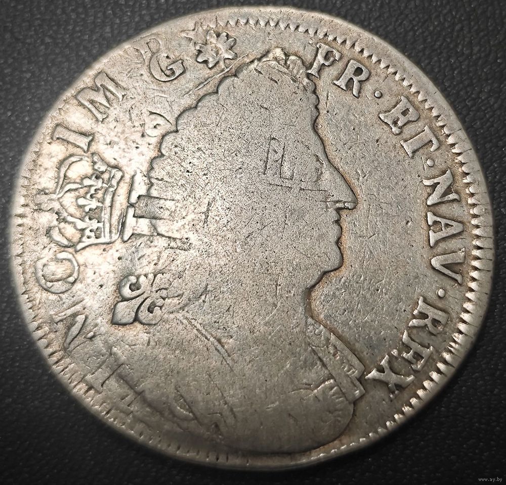 Важно!!! Монета не является затертой в результате обращения! Состояние монеты обусловлено браком в результате перечекана (перепутка аверс/реверс со смещением)! Монета представляет собой хороший коллекционный экземпляр (крупная, полновесная серебряная монета конца 17 века периода правления Людовик XIV "Король-солнце") с неплохим рельефом и в незначительном тираже, с интересным браком! Даже по цене металла стоимость монеты составляет по цене металла более 200 рублей! Не пропустите отличную возможность пополнить коллекцию интересным и редким экземпляром!