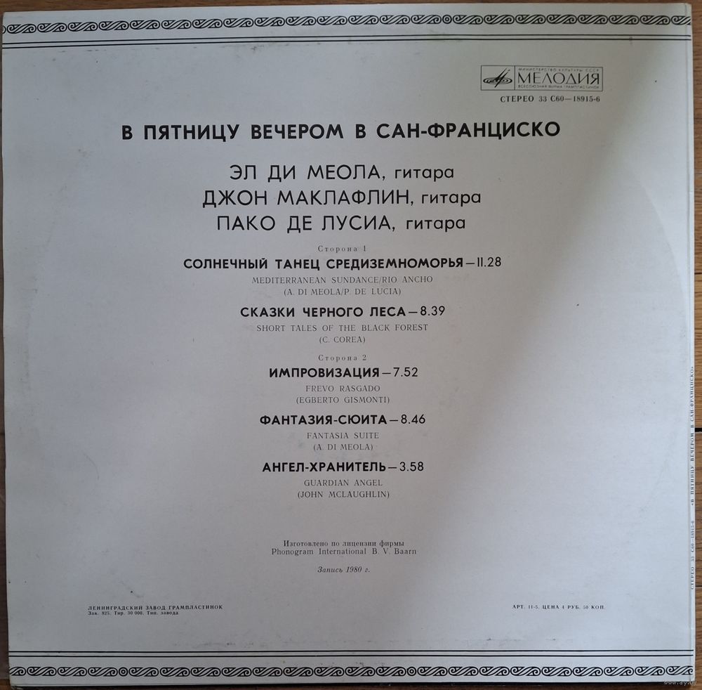 Эл Ди Меола, Джон Маклафлин, Пако Де Лусиа – В Пятницу Вечером в Сан-Франциско