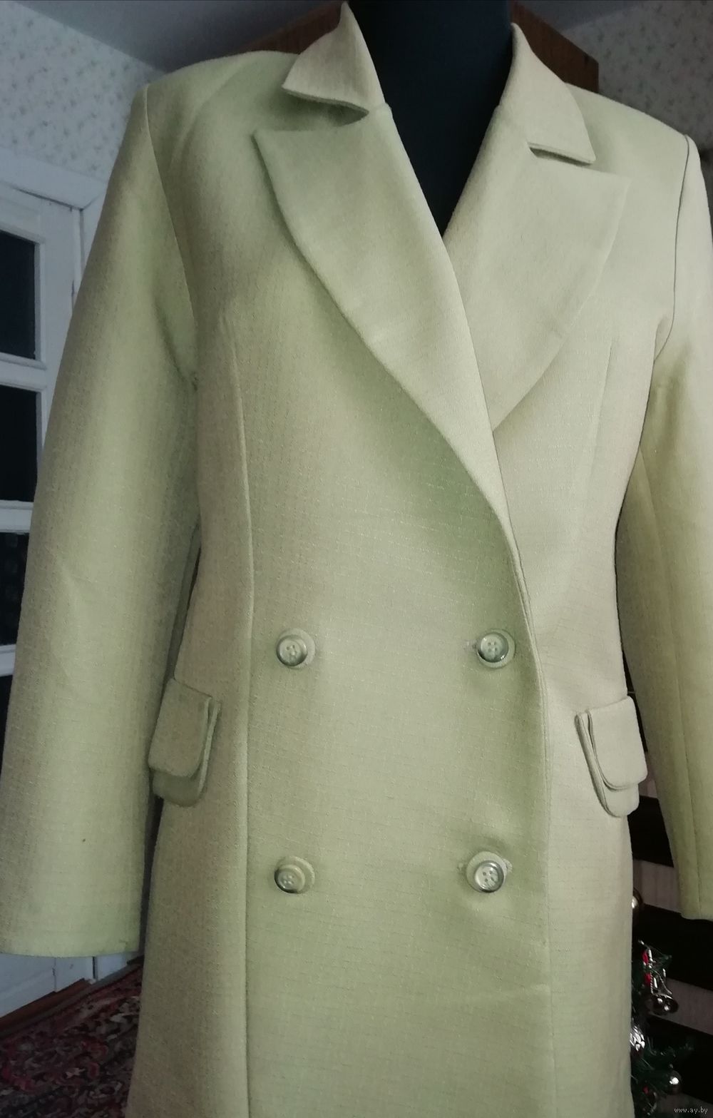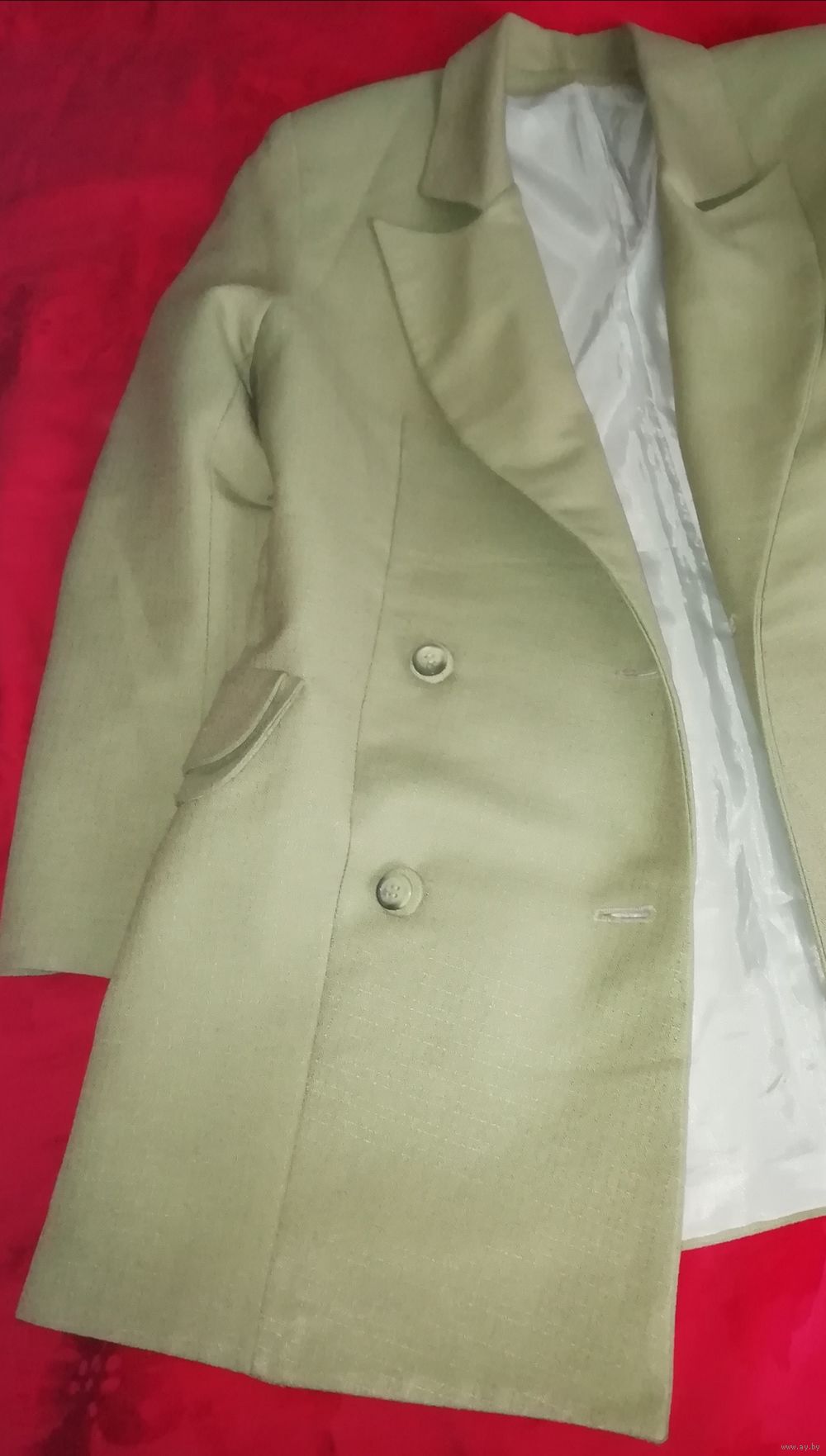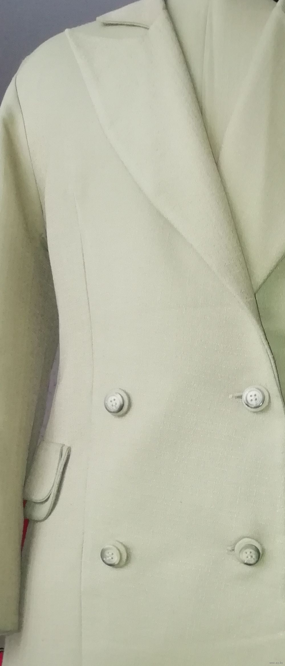 | Двубортный пиджак на подкладке из ткани костюмной, проклеен. На фото не проглажен, был сложен в пакете. Очень хорош в уходе и носке, прекрасно держит форму.. | |