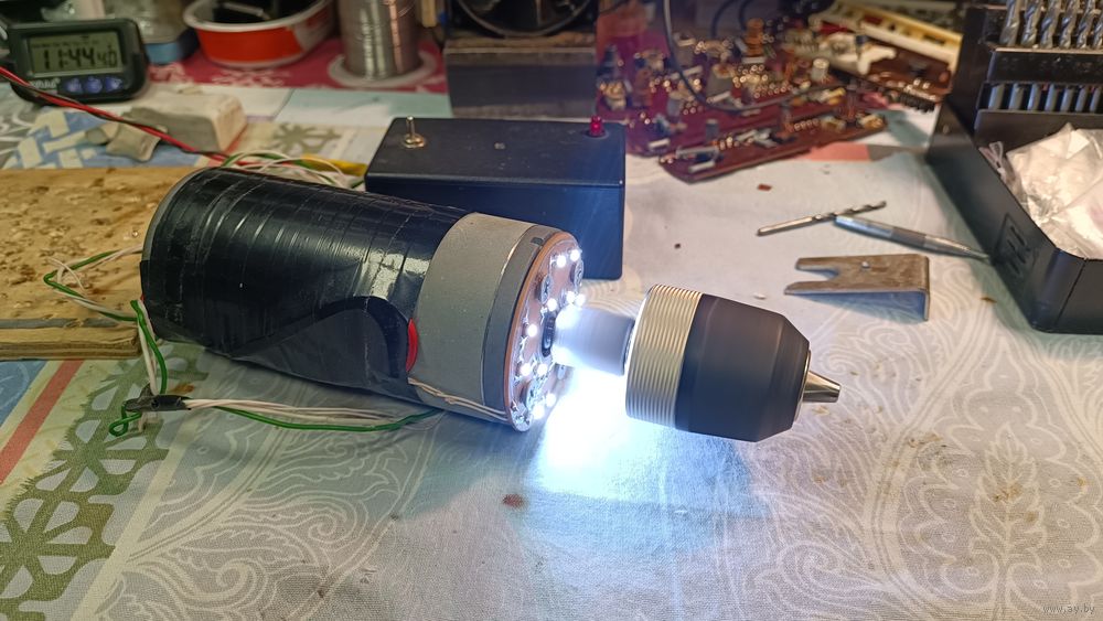 Дрель уже при напряжении 24 вольта сверлит толстый металл !