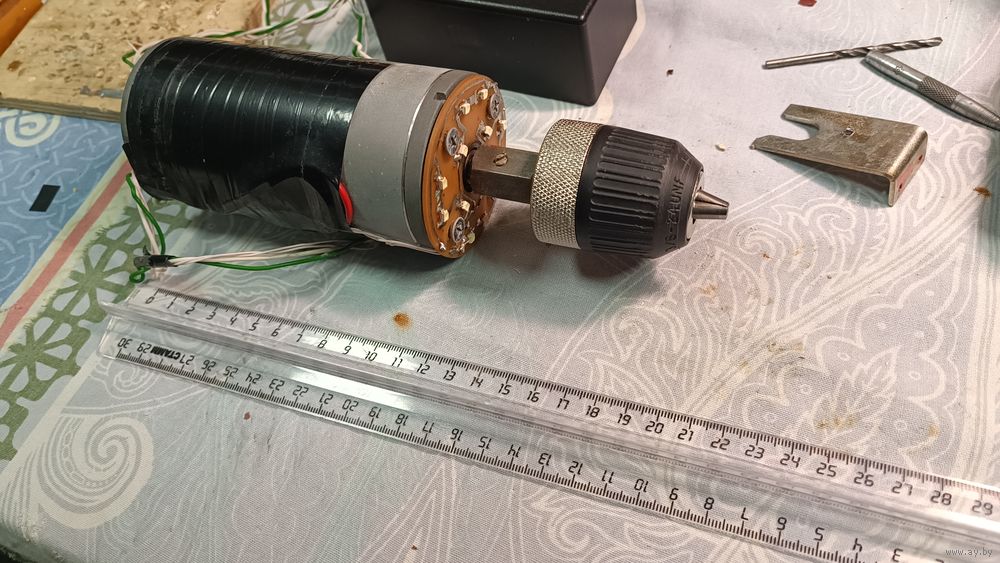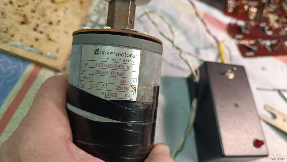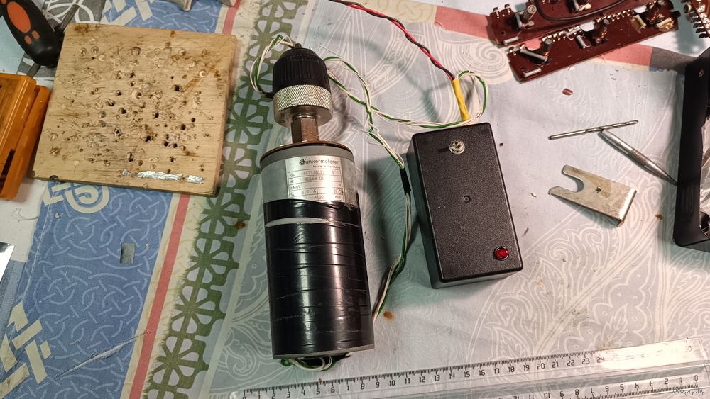 Использован Очень мощный двигатель от считывающего устройства немецкого станка .