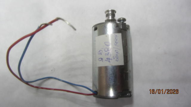 В наличии 1 шт.(9В,4380 обор/мин,диаметр 30 мм,длина 66 мм,диаметр вала 2 мм.)
