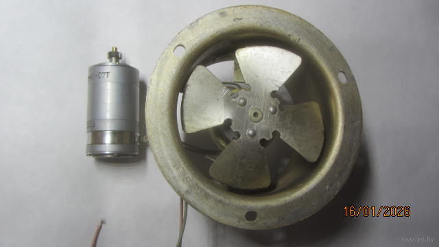 Электродвигатели коллекторные пост.тока (27В,4500 обор/мин,2,31 и 2,54 Вт.),Вентиляторная насадка с креплением со второго снята,в наличии.