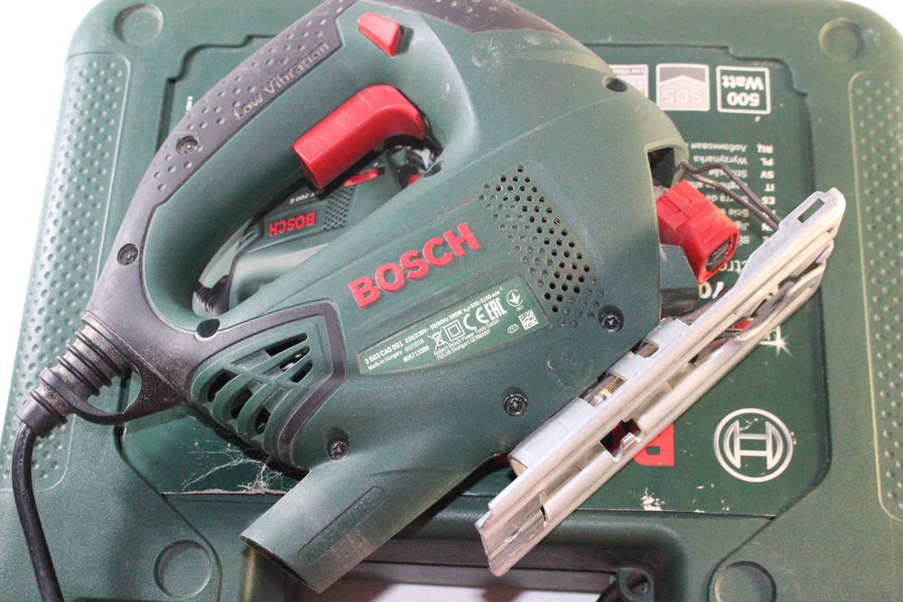 рукоятка-скоба, питание: сеть, 500 Вт, глубина пропила: 70 мм (дерево), 4 мм (сталь), 500–3100 ходов/мин, 1.7 кг
