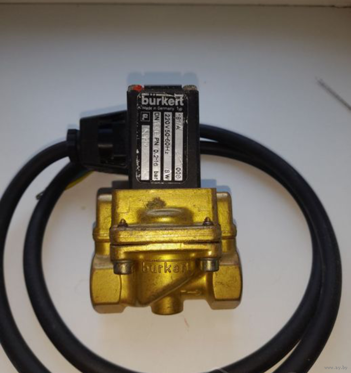 Электромагнитный клапан 2/2-ходовой, нормально закрытый, пневматического типа; Напряжение 181 А; 220 В 50-60 Гц Диапазон давления: 0,2-16 бар Соединение порта; 1½ дюйма Бренд; BURKERT Сделано в ГЕРМАНИИ