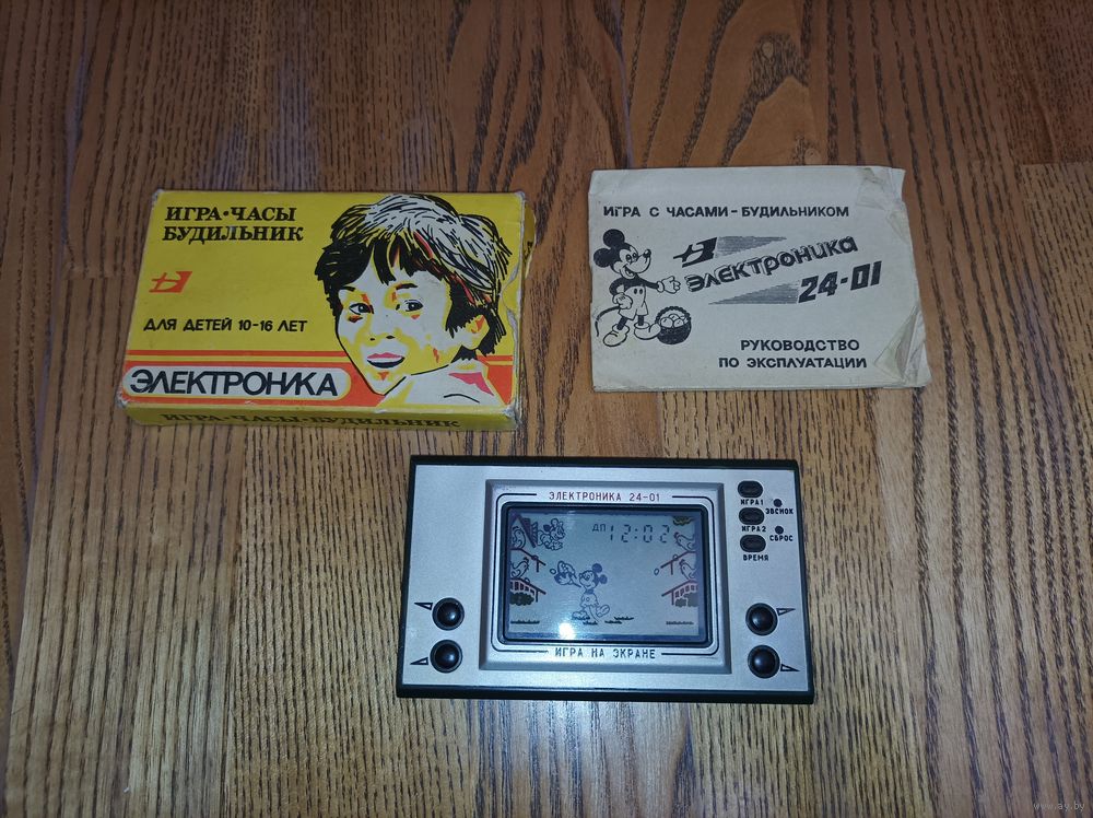 Электроника 24-01. Игра на экране: Микки Маус. Полный комплект: коробка, инструкция, сама консоль. Штамп в гарантийном талоне 1992год. Рабочая.