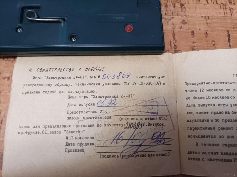 В рабочем состоянии. Комплектная. Гарантийный талон совпадает с серийным номером на корпусе. Коробка с надрывом, клапана все на месте. Батарейный отсек без окислов. Крышка батарейного отсека родная , с дефектом, но закрывается и держится. Пломба заводская утеряна. Цена на корпусе игры (23 рубля) запаяна на заводе.