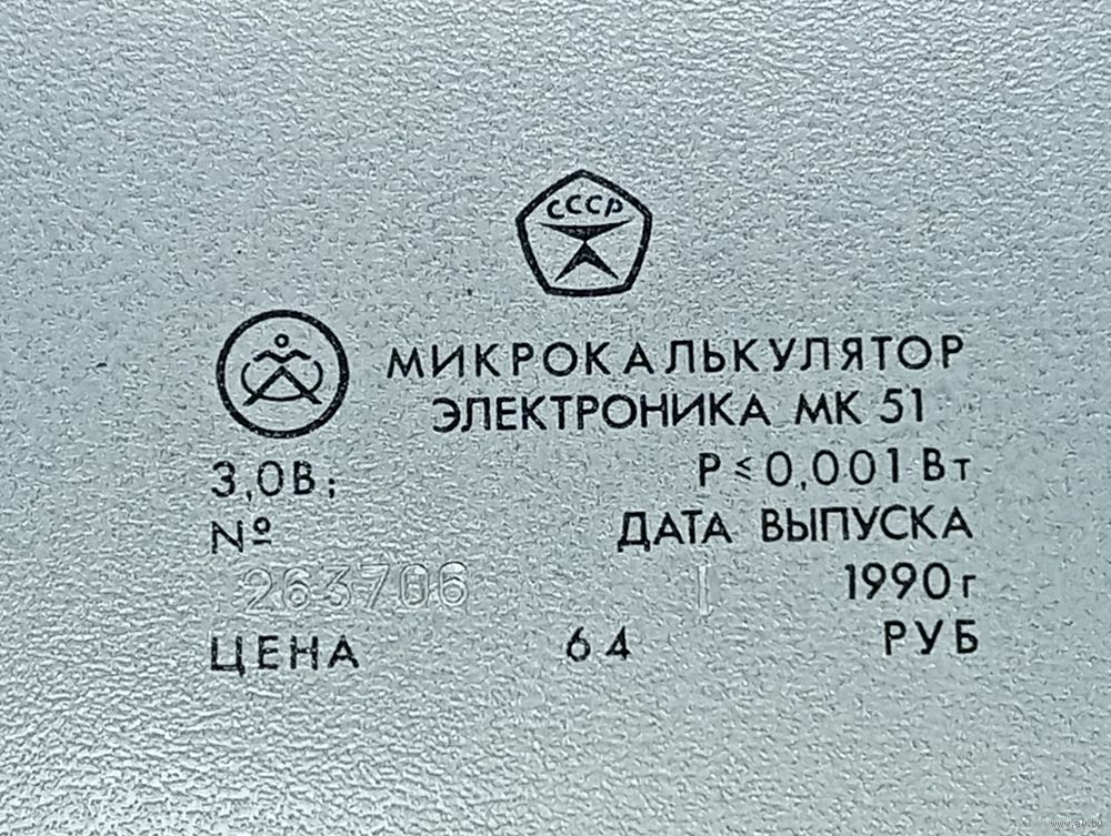 Электронный микраколькулятор ЭЛЕКТРОНИКА МК 51 1990 года выпуска .