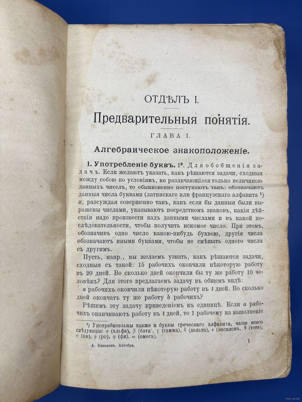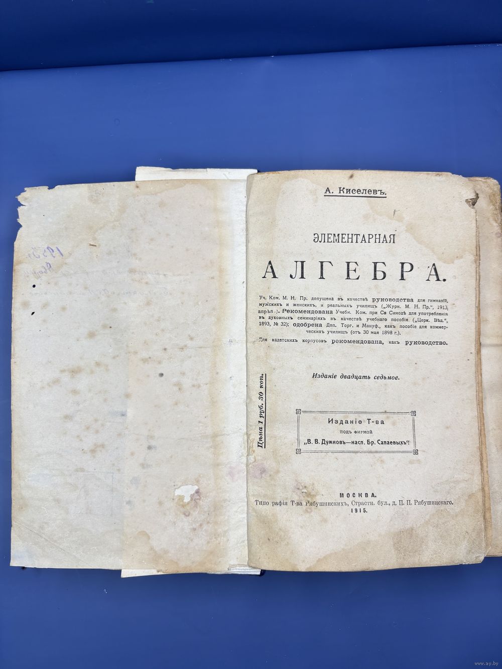 Элементарной алгебре А. Киселева, изданного в Москве в 1915 году