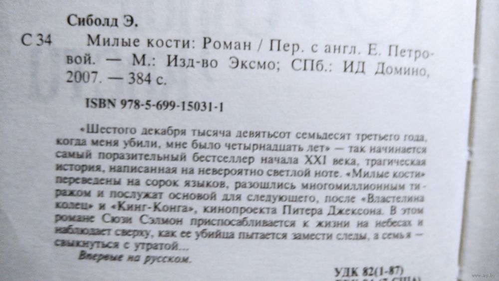 Шестого декабря тысяча девятьсот семьдесят третьего года, когда меня убили, мне было четырнадцать лет — так начинается самый поразительный бестселлер начала XXI века, трагическая история, написанная на невероятно светлой ноте. `Милые кости` переведены на сорок языков, разошлись многомиллионным тиражом и послужат основой для следующего, после `Властелина колец` и `Кинг-конга`, кинопроекта Питера Джексона. В этом романе Сюзи Сэлмон приспосабливается к жизни на небесах и наблюдает сверху, как ее убийца пытается замести следы, а семья — свыкнуться с утратой...