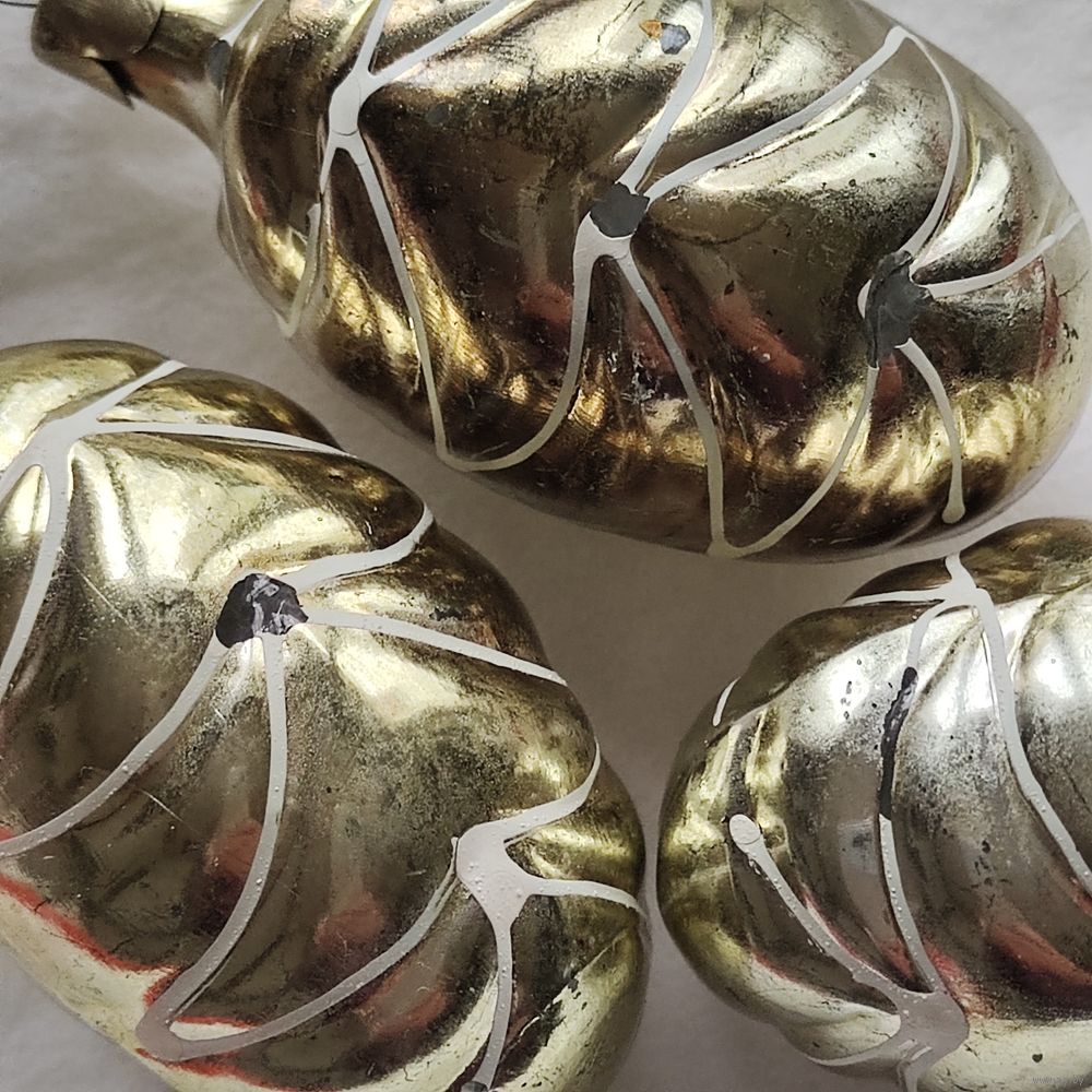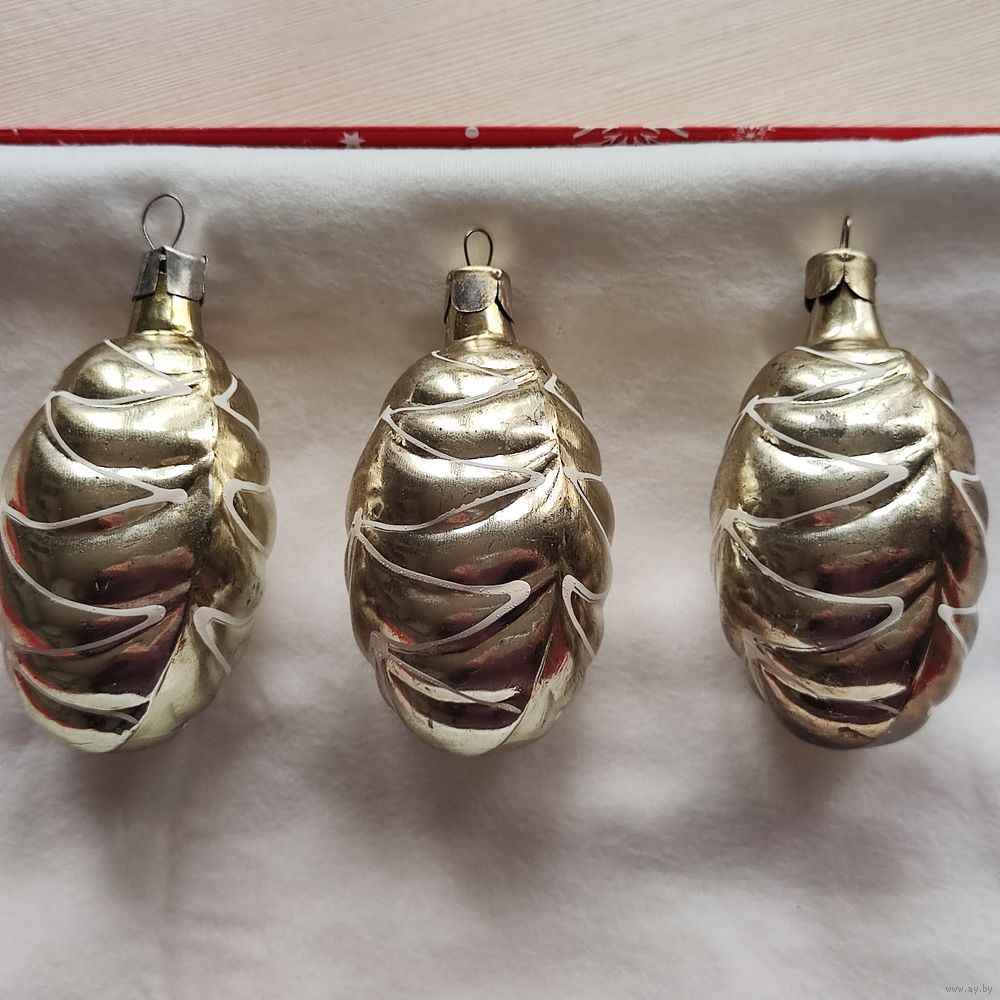 Елочные игрушки "елка-шишка" интересного цвета. Стекло целое, есть моменты отслоения покрытия. Цена за 3 шт.