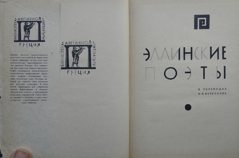 Большой формат. 488 стр. В сборник входят представители эллинской поэзии: Сафо, Гесиод, Архилох, Семонид Аморгосский, Алкман, Мимнерм, Алкей, Феогнид, Гомеровские гимны и другие. Переводы В. В. Вересаева.