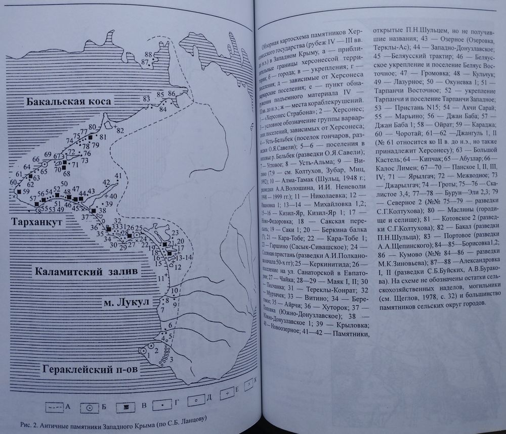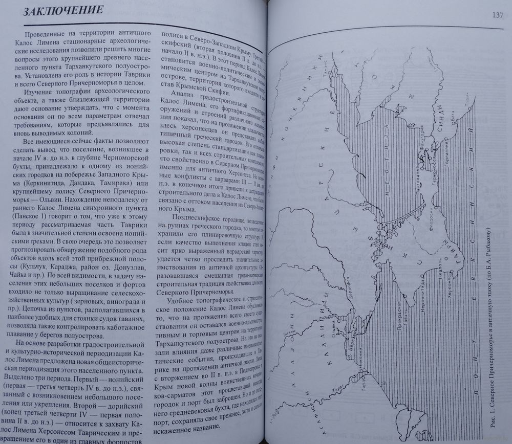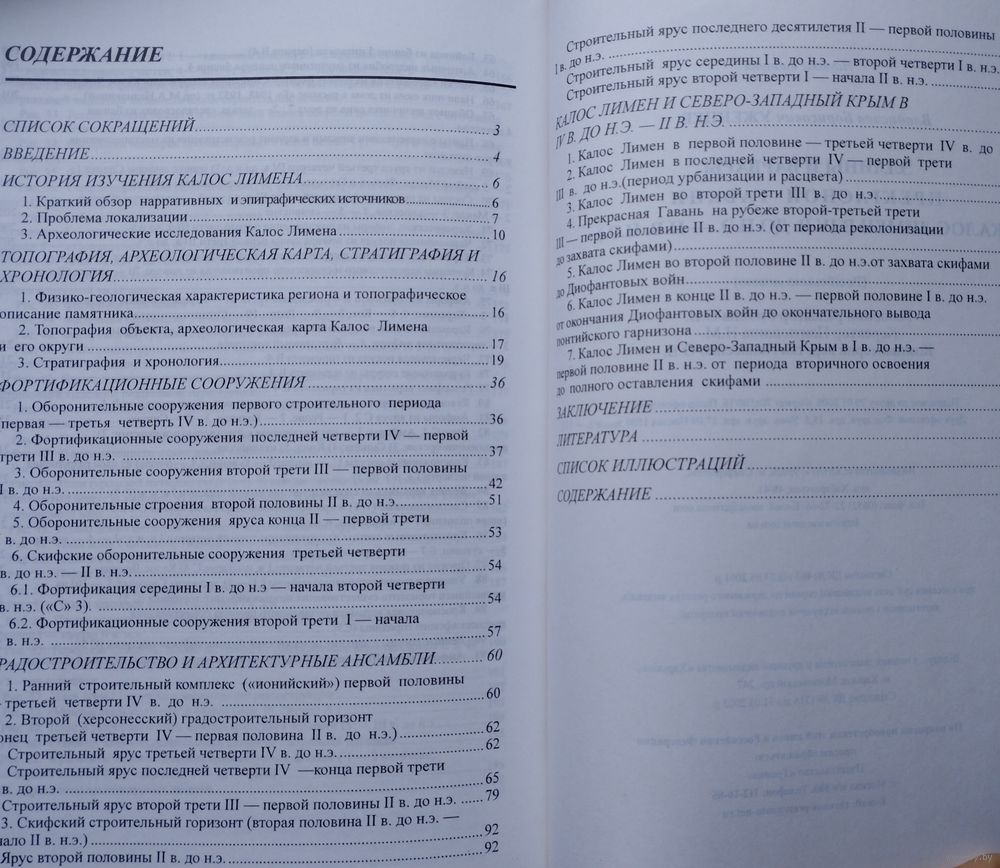 Большой энциклопедический формат. Тираж 1500 экз. 248 стр. Монография посвящена крупнейшему в Северо-Западном Крыму населенному пункту – античному городищу Калос Лимен (Прекрасная Гавань). На основе рассмотрения всех имеющихся письменных источников, а также комплексного изучения его стратиграфии, фортификации, жилой застройки создана дробная хронология этого памятника археологии, установлена его военно-политическая роль в жизни Западного Крыма и Северного Причерноморья в целом. В основу монографии положены результаты работ Западно-Крымской экспедиции, проводившиеся на Калос Лимене с 1988 по 2003 г., в которых на протяжении всего времени раскопок принимал участие автор. Книга иллюстрирована схемами и чертежами.