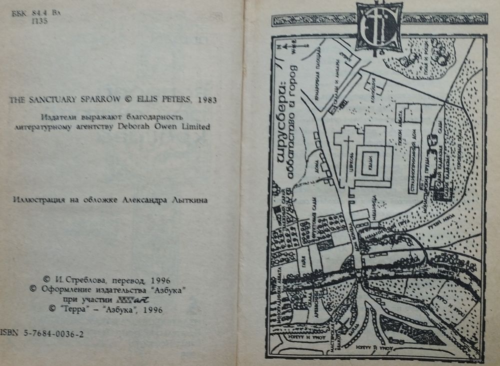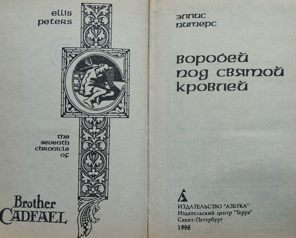 Тираж 20000 экз. 480 стр. "Воробей под святой кровлей" - "The Sanctuary Sparrow" - Детективный роман английской писательницы Эллис Питерс (1913-1995) из серии о расследованиях сыщика-любителя брата Кадфаэля. Во время свадьбы Даниэля Аурифабера и Марджери Бель неизвестными похищены драгоценности. В краже обвиняют юного бродячего артиста, и он просит убежища в аббатстве Шрусбери.