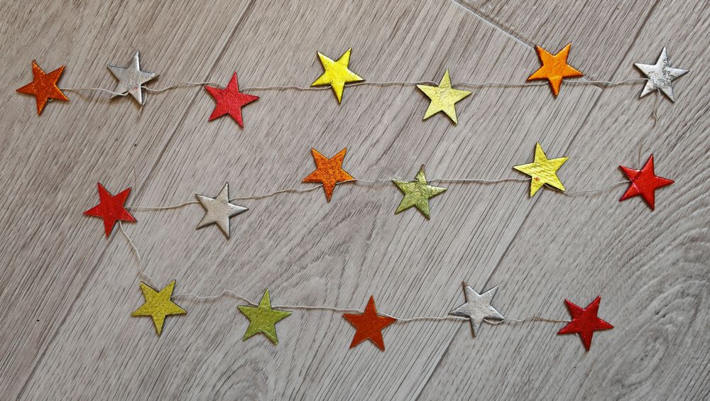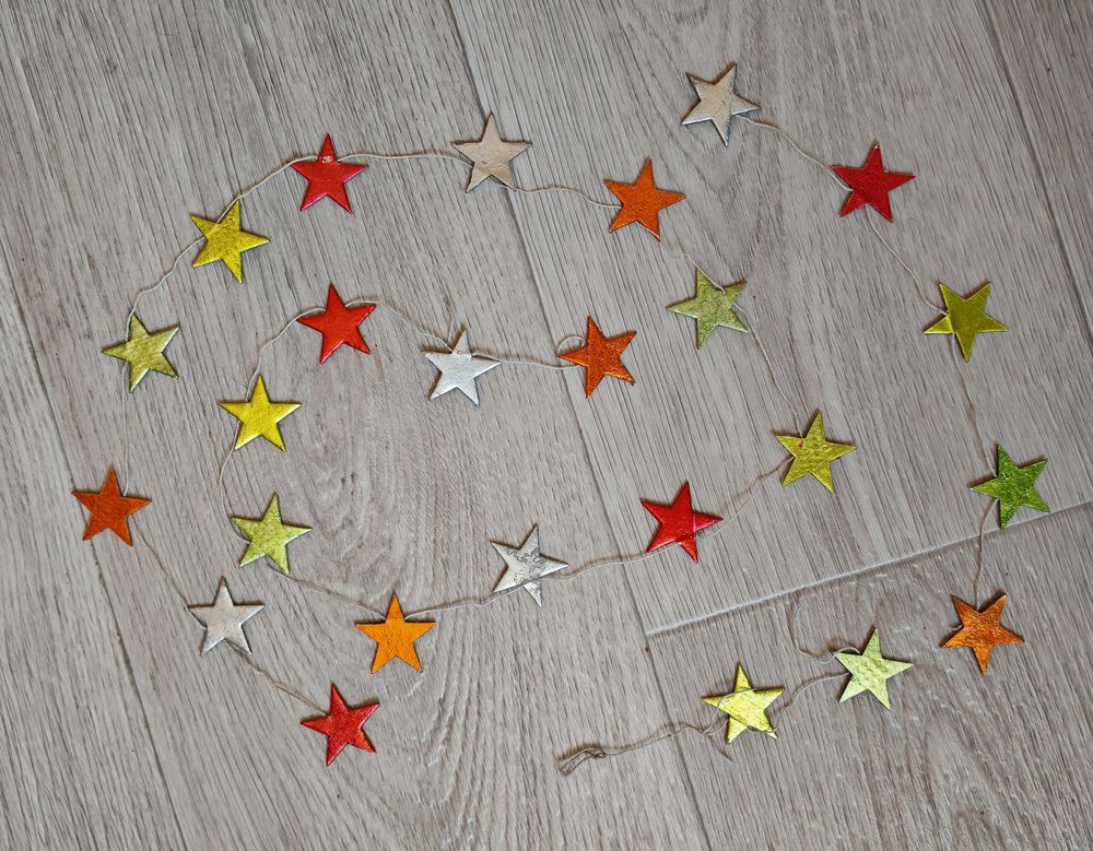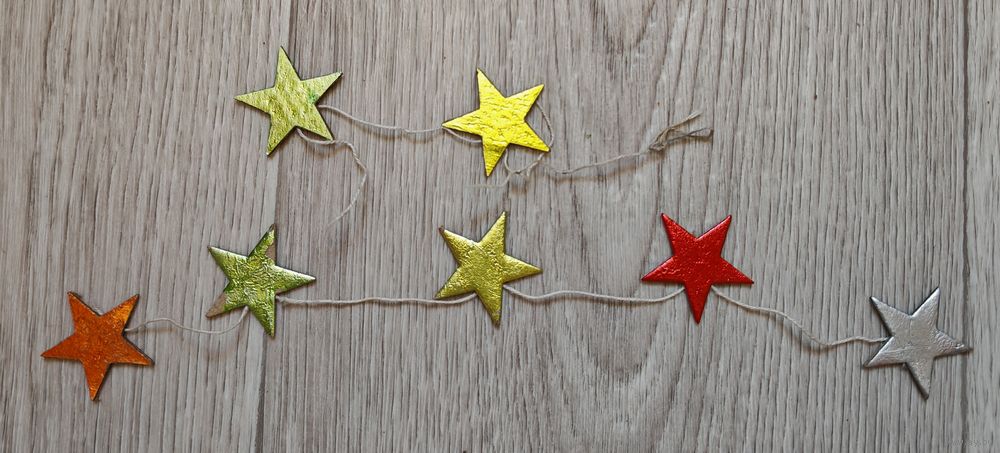 Редкая гирлянда СССР. Картонаж. Следы использования. Длина большой нити около 89 см. Состояние на фото.