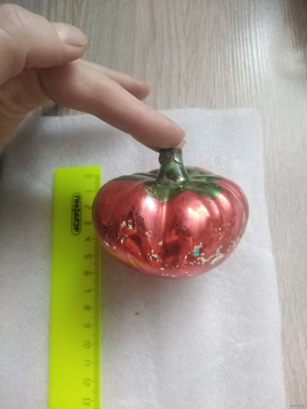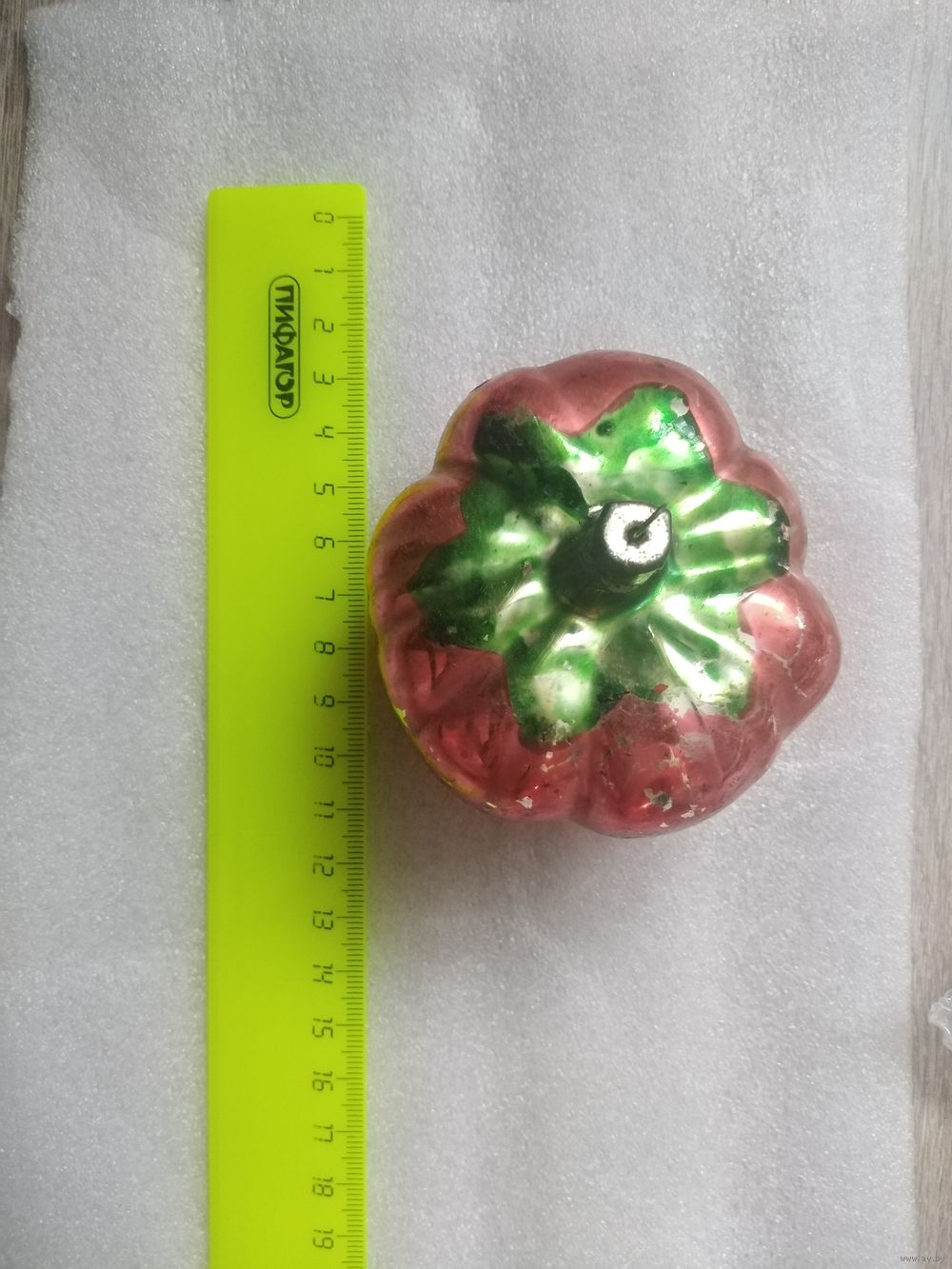 Елочная игрушка. Стекло. Крупный помидор. Игрушка целая, потери краски.