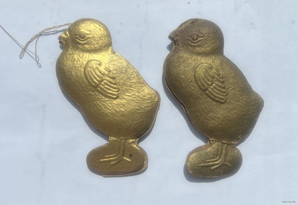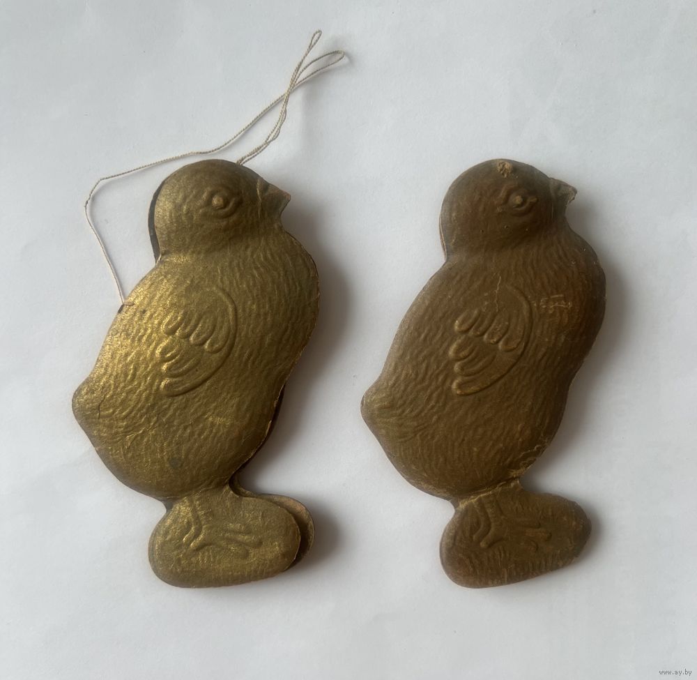 Елочная игрушка Цыплёнок в золоте картонаж 1930-40-е года цена за единицу