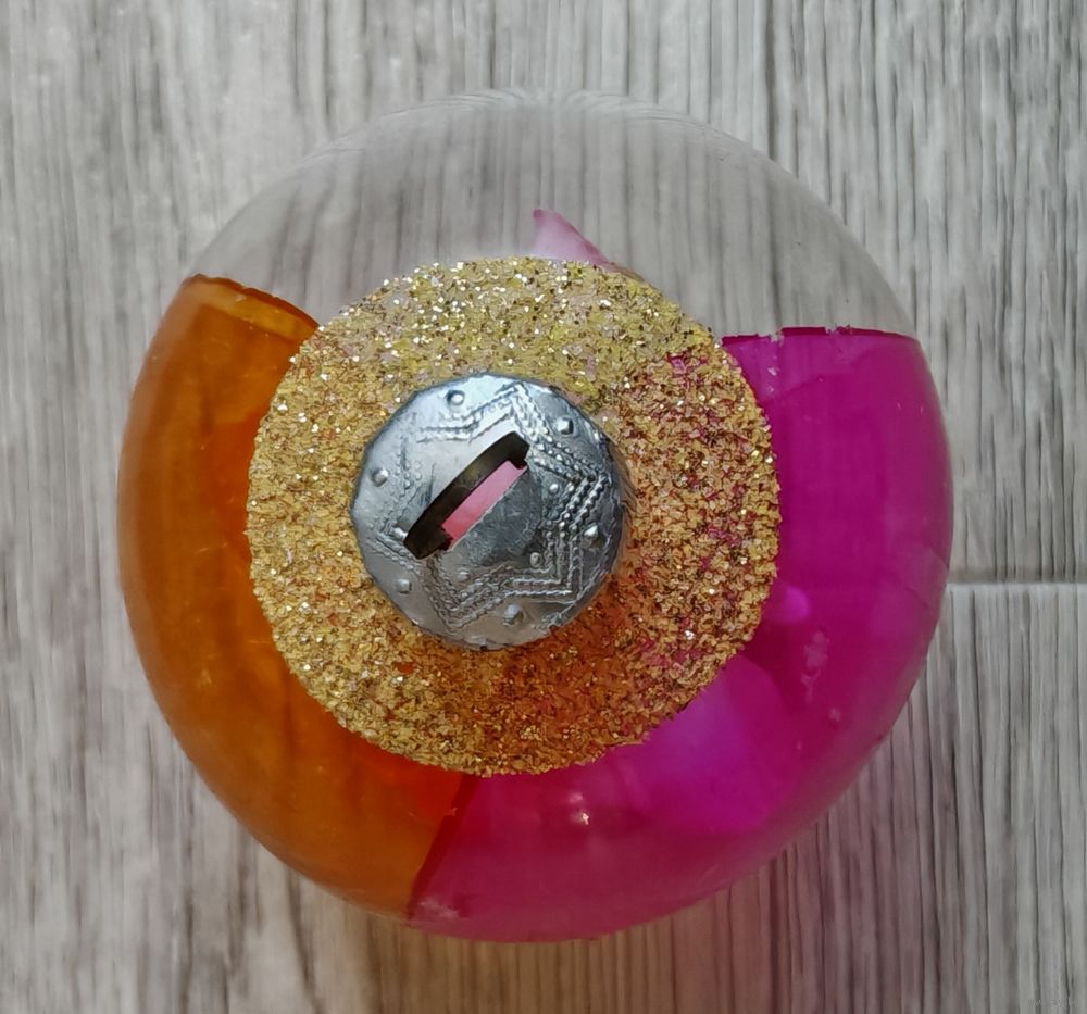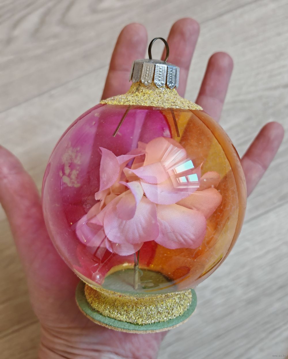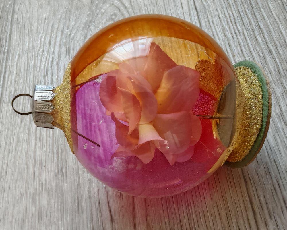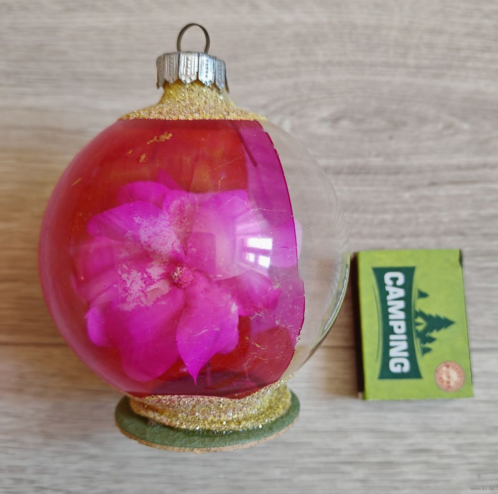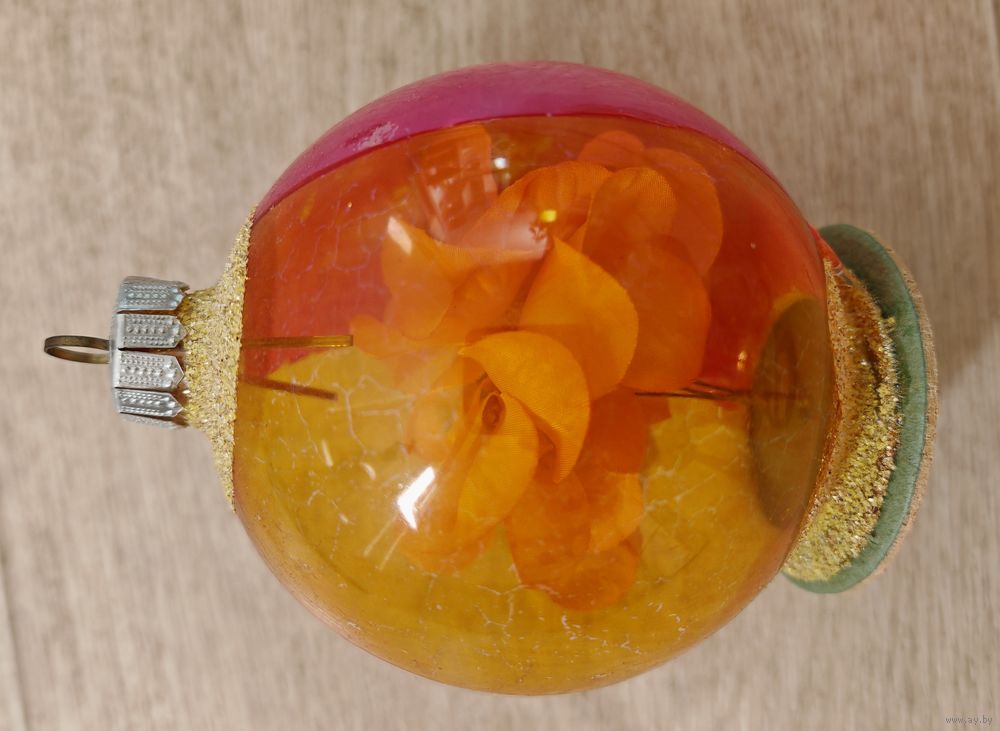 Елочный шар ГДР. Под держателем скол трубки (не виден и закрыт) и кусочек стекла находится на дне игрушки (фото 9). Держатель не снимался.