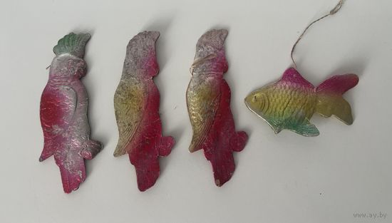 Елочная игрушка картонаж попугай рыба СССР цена за все