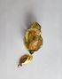 Игрушка подлежит реставрации. Есть осколки только от большого отверстия. Крючок целый.