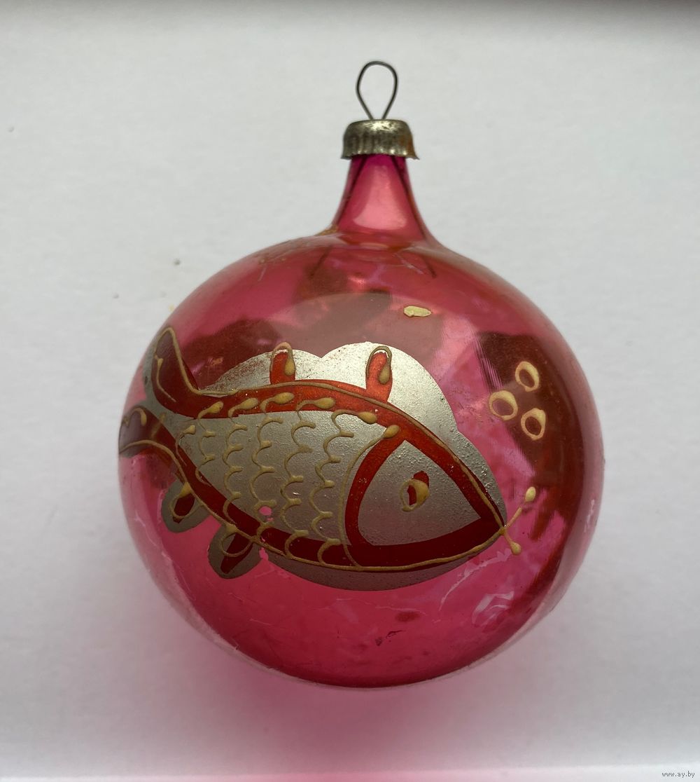 Елочная игрушка Шар большой с Рыбами, 10 см