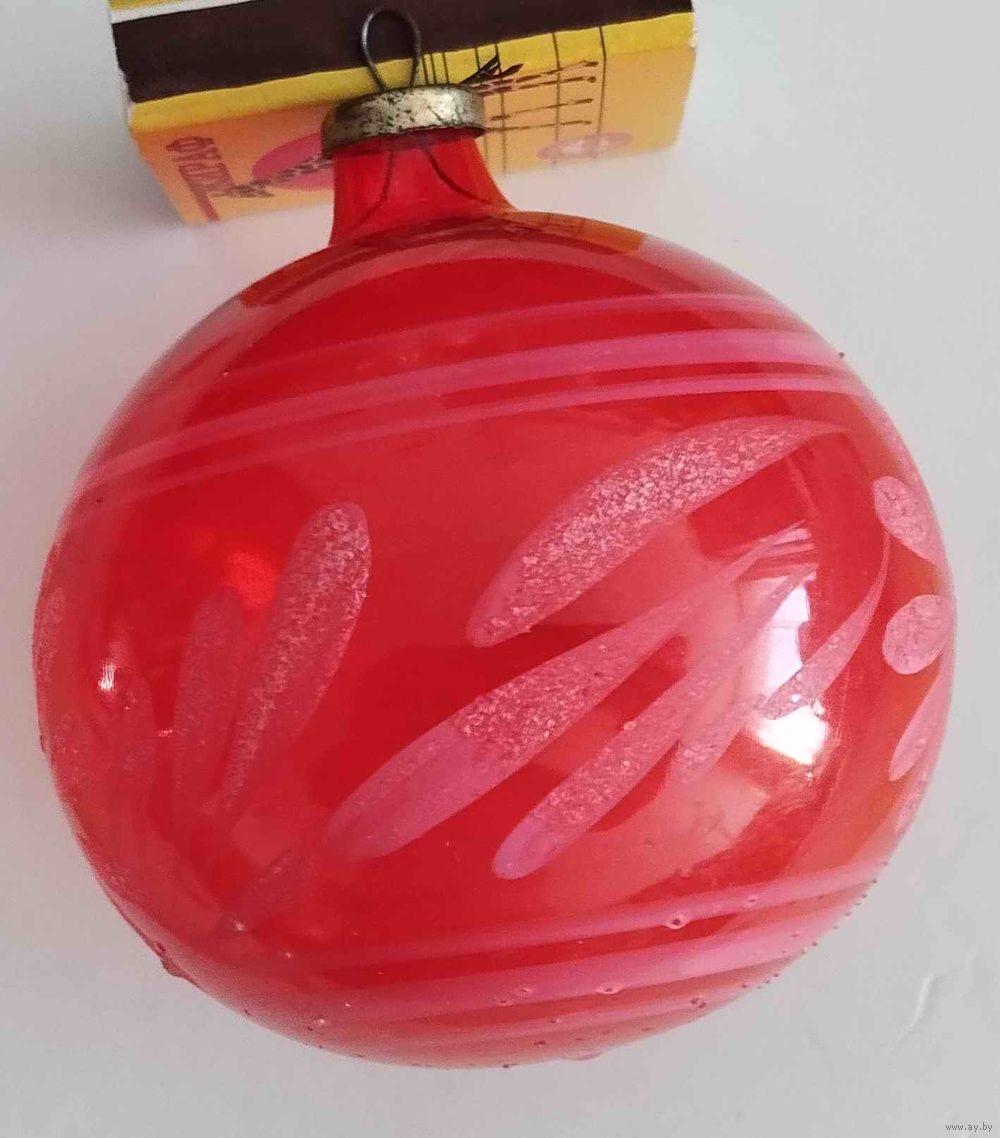 Елочная игрушка СССР. Большой прозрачный шар красный