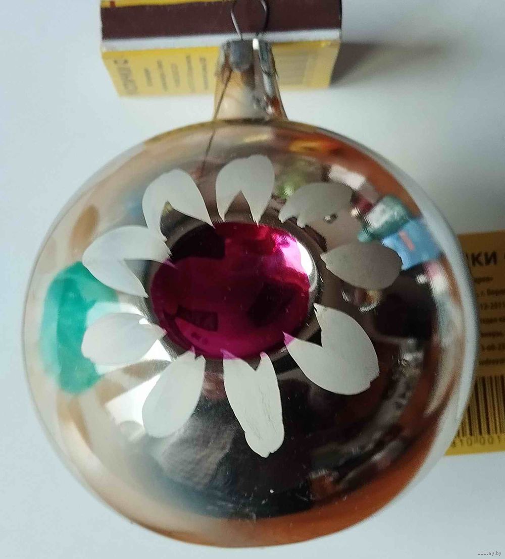 Елочная игрушка СССР.. Большой шар с цветами. Редкость !