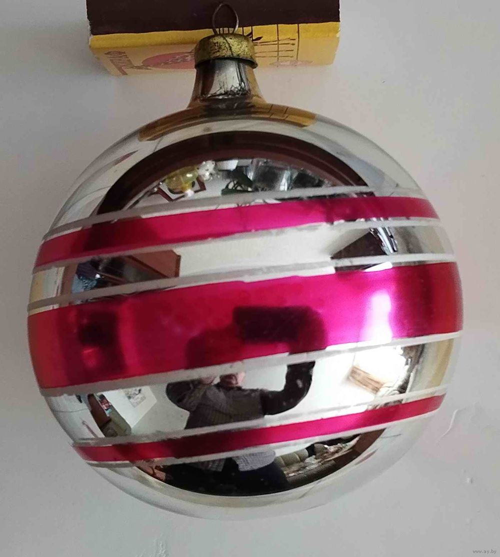 Елочная игрушка СССР. Большой шар с полосками