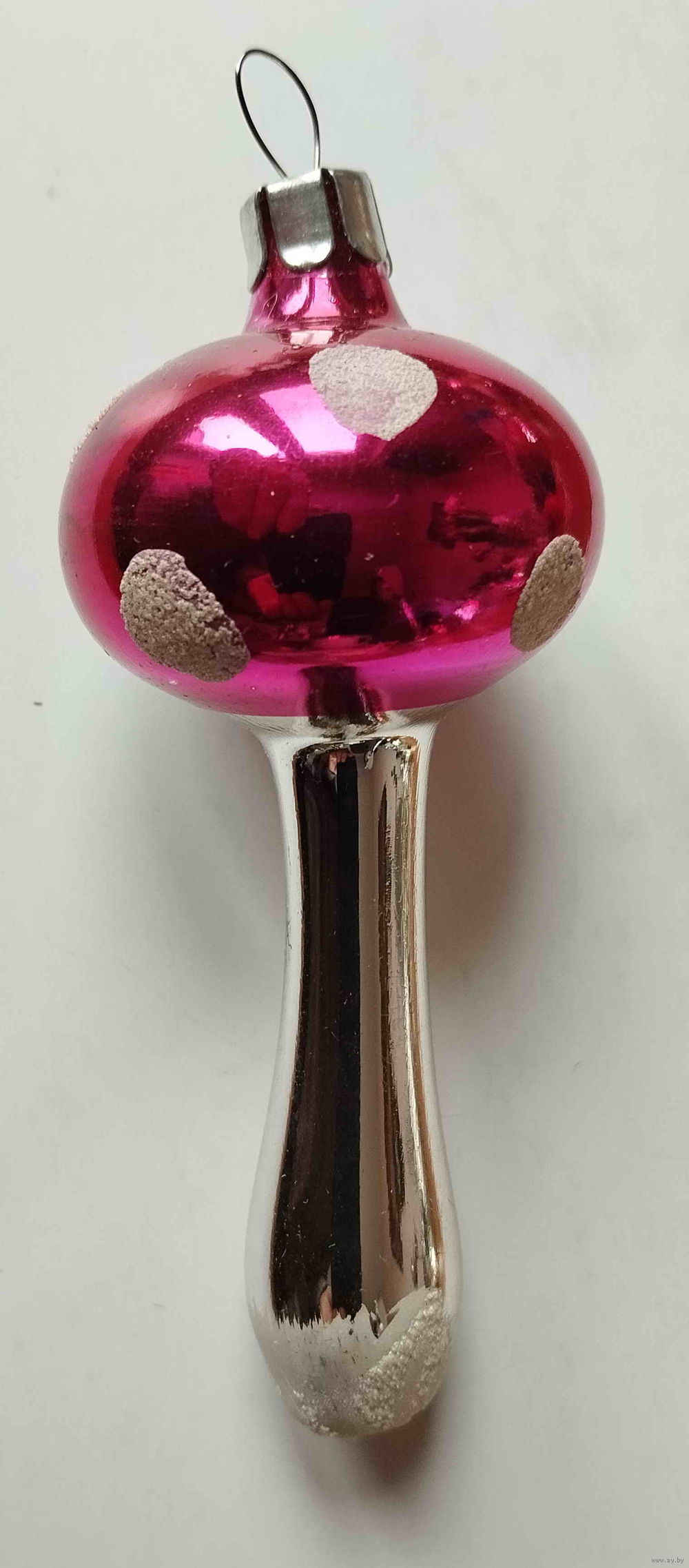 Подвесное новогоднее украшение из стекла. Тонкое стекло с цветным покрытием и ручной росписью. Грибы на елке традиционно символизируют плодородие, изобилие и связь с природой.