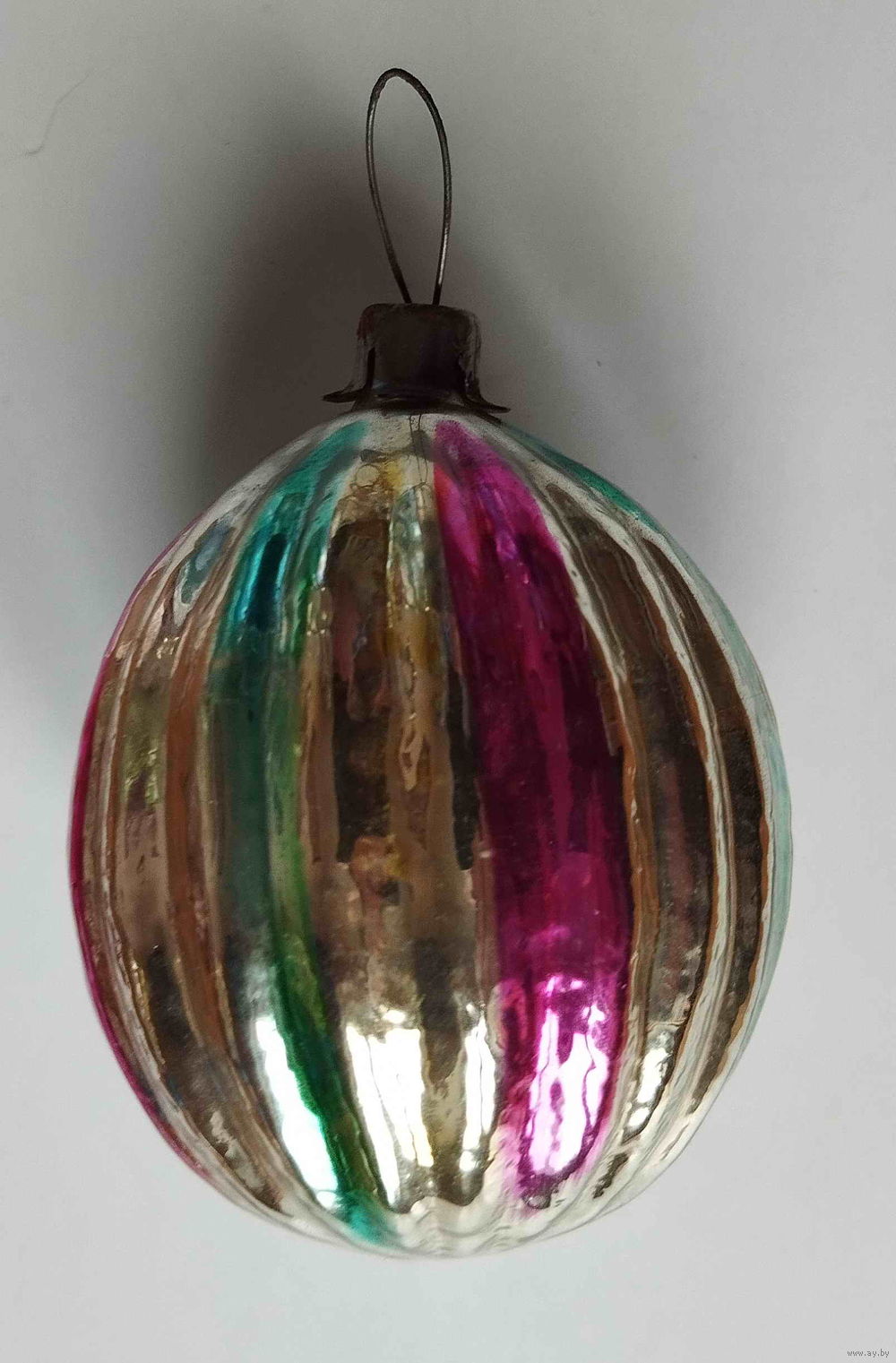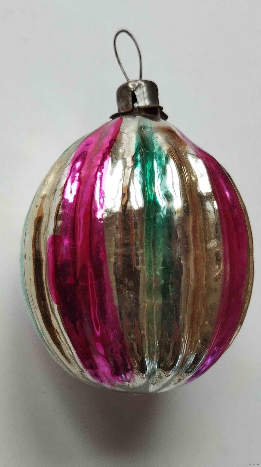 Елочная игрушка СССР. Ребристый шар с вертикальными цветными полосами