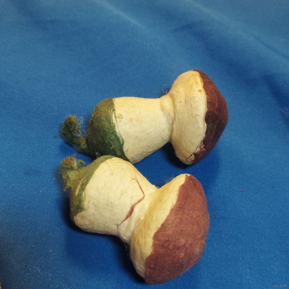 Елочная новогодняя игрушка СССР гриб грибок парная ватная техника накатка