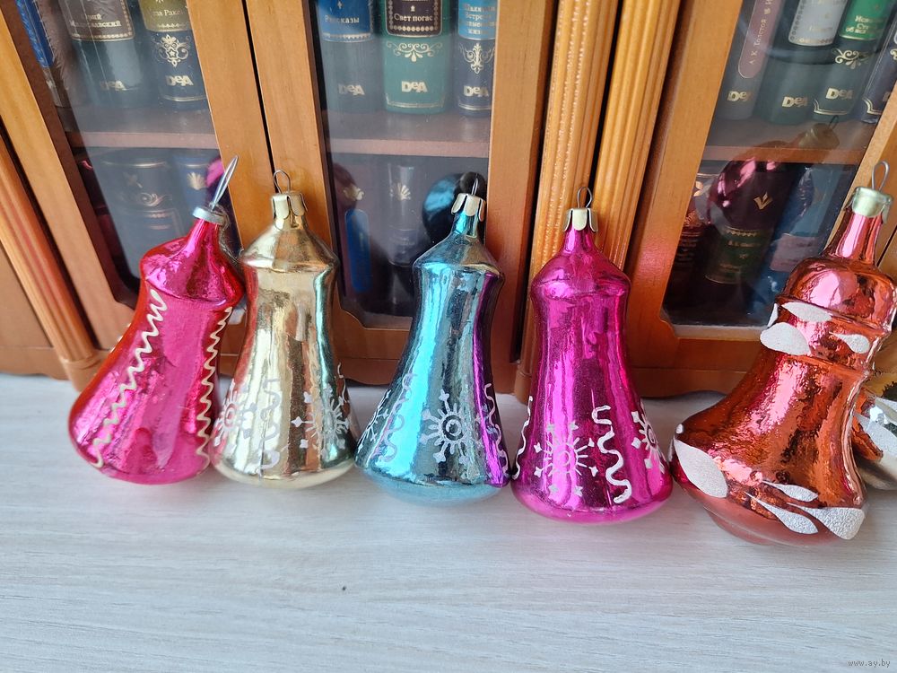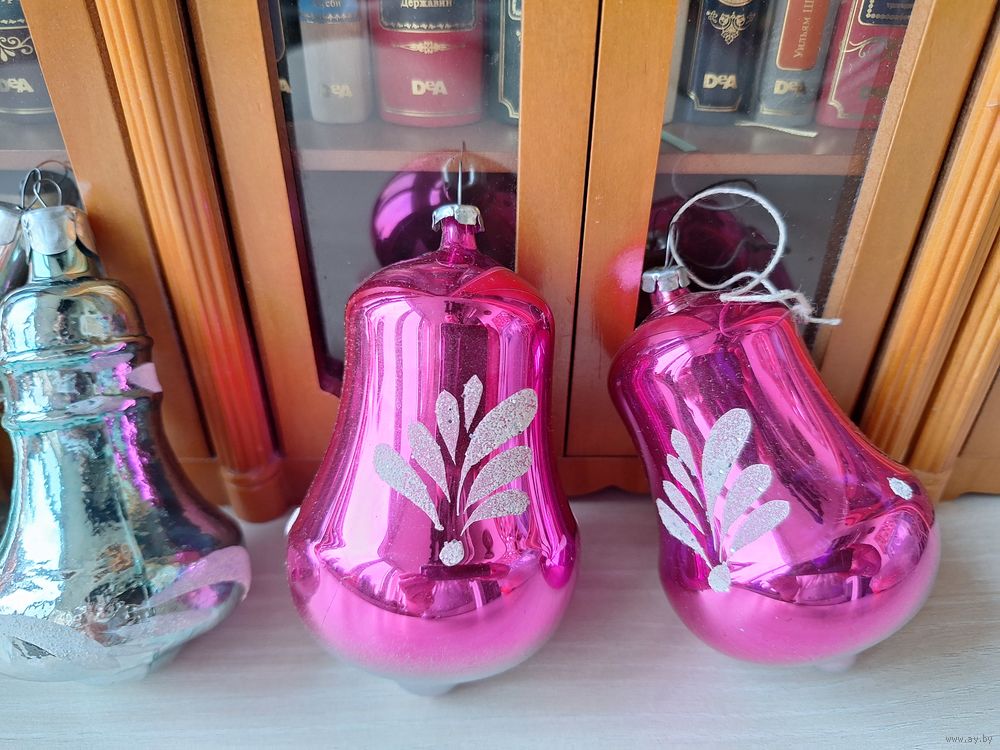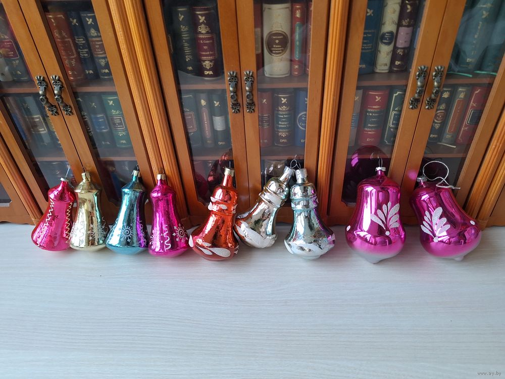 Елочные игрушки - колокольчики (один из них фосфорный - светится в темноте) - 9 штук