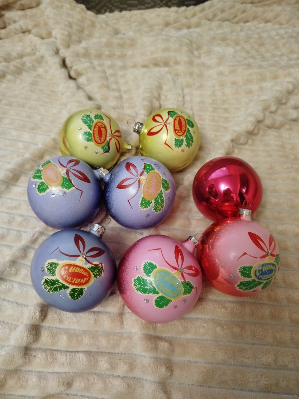 8 шаров разного цвета в одной тематикой С Новым Годом.