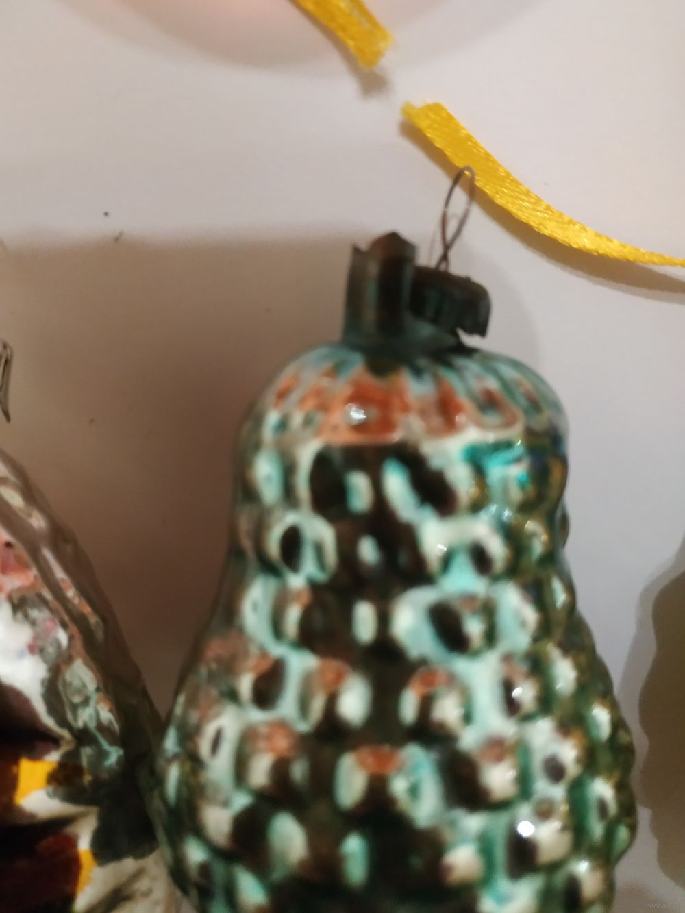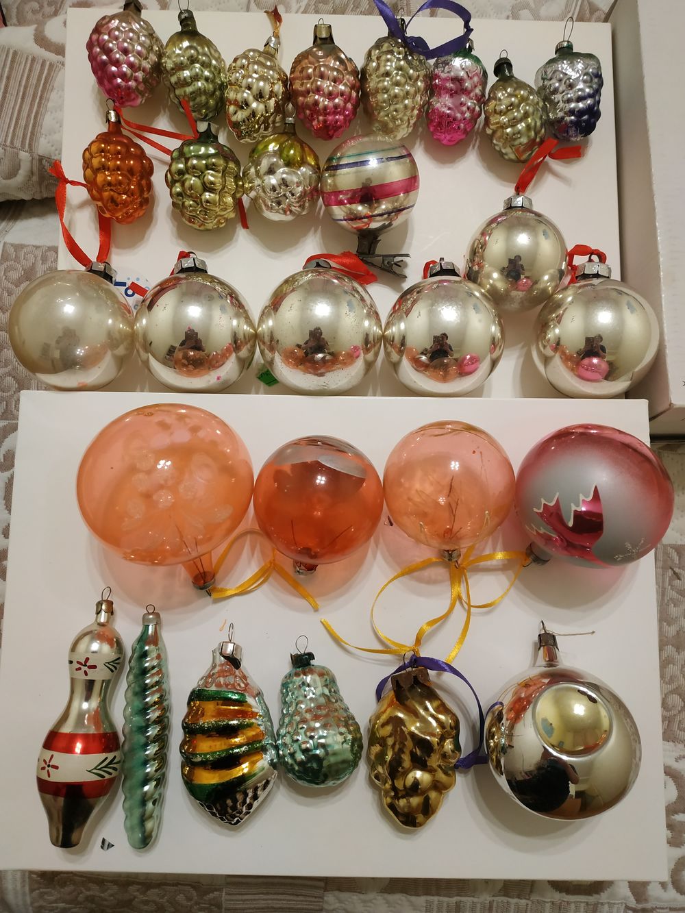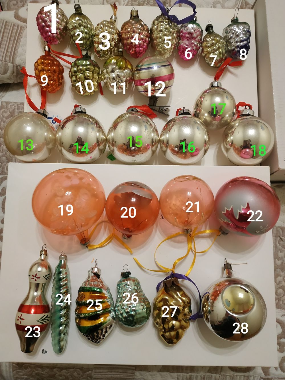 | Белые шары- толстое стекло. У трех игрушек повреждения у основания. Можно не лотом, но не менее 7 штук за 30 р | |