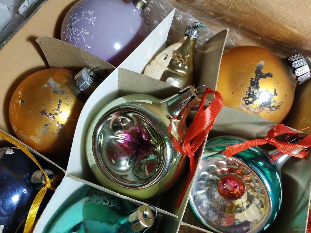 | у некоторых незначительные повреждения (на фото). Стекло. Состояние на фото. Синий шар с разводами из пластика | |