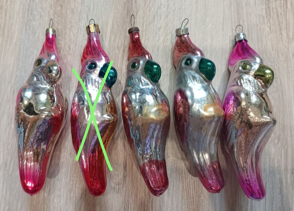 Елочные игрушки, стекло, попугай