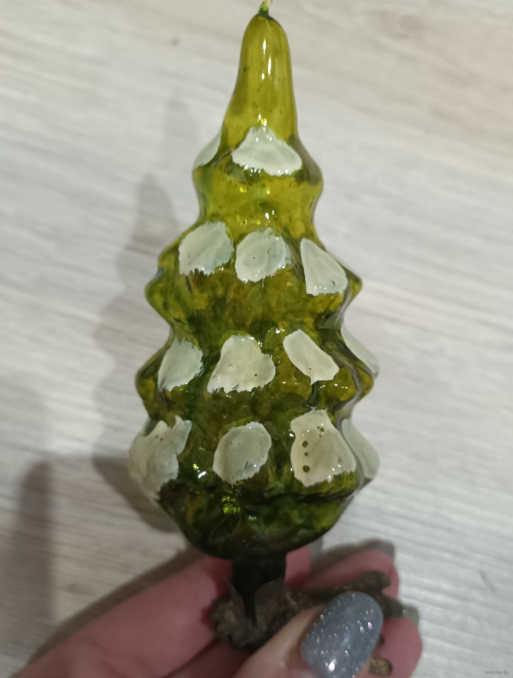 Елочные игрушки, стекло, ёлочка в снегу на прищепке